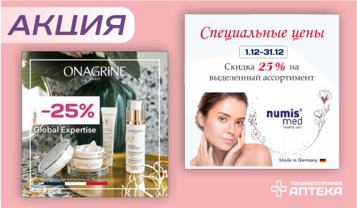Специальные цены в декабре на продукцию ТМ «Onagrine» и «Numis med»