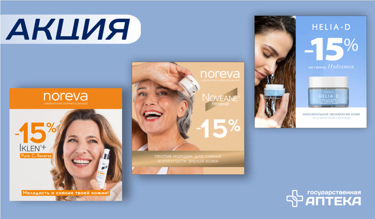 Весь декабрь скидка 15% от сформированных розничных цен на выделенный ассортимент продукции брендов «Helia-D» и «Noreva».